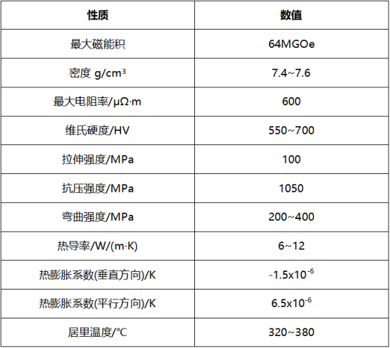 表1 钕铁硼磁体的物理与化学特性