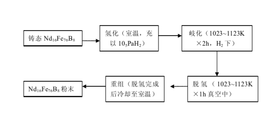 磁粉制备:采用HDDR(氢化-歧化-脱氢-再结合)法、机械破碎法或快淬法等制备磁粉。HDDR法是目前主流工艺,通过氢化-歧化-脱氢-再结合过程制备出平均粒径约为0.3μm的高矫顽力磁粉。