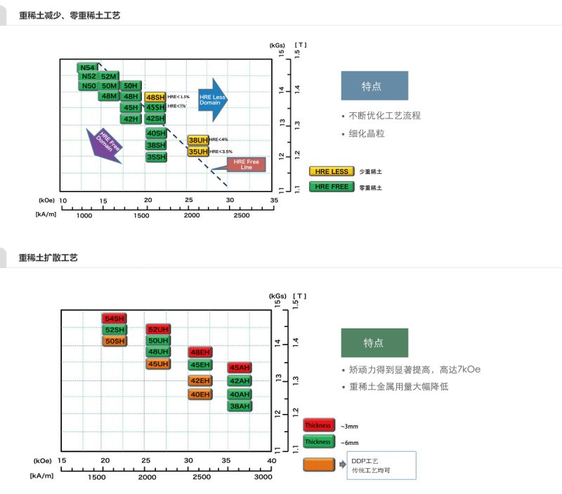 | 内禀矫顽力温度系数 (β(Hcj))/(%/K) | -0.42~-0.70 | |