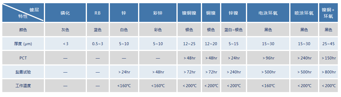 >> 无机涂覆:蓝白锌、彩锌、铜镍、镍铜镍、锌镍合金