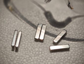 钕铁硼磁铁,诞生于 1982 年,由日本住友特殊金属公司的佐川真人发现。它由钕(Nd)、铁(Fe)、硼(Nd₂Fe₁₄B)组成,是一种四方晶系晶体。其主要原料包含稀土金属钕(29%-32.5%)、金属元素铁(63.95-68.65%)、非金属元素硼(1.1-1.2%),此外还会添加镝、铌、铝、铜等其